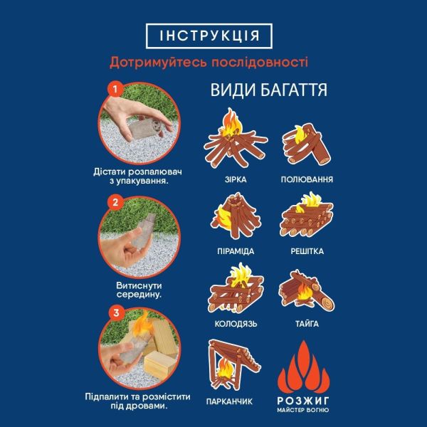 Турбо розпал буде незамінний в поході на пікніку, мисливство та рибальство для підігріву їжі або розведенні багаття. Температура горіння 1100 ° С