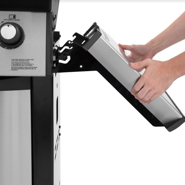 Гриль має дуже привабливий дизайн: Кришка і камера виготовлена з литого алюмінію. Додаткові столики з нержавіючої сталі. Без полиць. В кришку вмонтовано термодатчик. Закрита ніша для газового балона. Гриль укомплектований двома великими колесами і двома маленькими коліщатками з фіксаторами. Поздовжний пальник використовується для приготування страв на вертелі. В грилі встановлені три основних потужних пальника з горизонтальними соплами по обидва боки. У комплекті з грилем йде вертел, який працює від мережі, і знімач решітки.