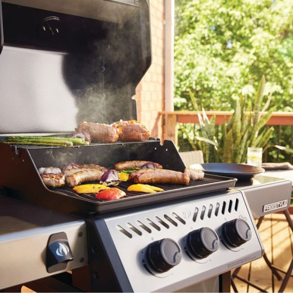 Дуже важливими є деталі, які характерні для серії Napoleon Freestyle. До них відноситься практична відкривачка для пляшок, вбудована на бічній полиці та м'яка ручка на кришці, яка сприяє приємнішому приготуванню їжі. Для грилю Наполеон на газі характерні литі грати хвилеподібної форми. Завдяки їм ваша їжа буде приготовлена рівномірно, включаючи типове маркування. Три пальники із нержавіючої сталі забезпечують рівномірний розподіл тепла. Якщо ви вирішили купити газове барбекю, звертайтеся до наших фахівців, які із задоволенням розкажуть про всі важливі деталі продукції Napoleon. Запорука безперечного успіху. Компактна серія гриля Napoleon Freestyle 365 у матовому графітовому кольорі забезпечує максимальну продуктивність та задоволення від процесу приготування їжі. Гриль газовий Наполеон має: три основні пальники (рівномірно розподіляють тепло); термометр Accu Probe (показують внутрішню температуру); системи запалювання Jetfire (ввімкнення одним натисканням кнопки); складані бічні полиці (вміщують безліч елементів); чавунні грати з фарфоровим покриттям (прості у догляді). Камера гриля зроблена з міцного литого алюмінію. Обладнання виглядає стильно та розкішно, тому ви завжди почуватиметеся на висоті. Завдяки великим і міцним колесам Napoleon гриль легко переміщати місцевістю. Він економить простір, а також легко і швидко очищається. Будь ви професійним кухарем або новачком, який бажає освоїти ази в кулінарії, Napoleon гриль гарантує відмінний результат. Завдяки безлічі додаткових аксесуарів, пропонованих TM Napoleon, ви миттєво досягнете бажаного успіху.Відео огляд: