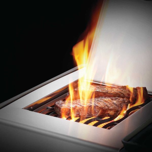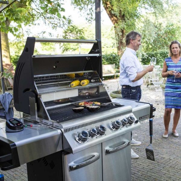 Газовий гриль Napoleon Legend 485 – це топ-модель у серії газових грилів Napoleon Freestyle. Газовий гриль Napoleon Freestyle 485 оснащений чотирма основними трубчастими пальниками, що уможливлює використання як прямого, так і непрямого жару. Бічний інфрачервоний пальник SIZZLE ZONE™ розігрівається від 0°С до 800°С до 1 хвилини та гарантує чудовий результат при обсмажуванні продуктів на високій температурі. А задня інфрачервона пальник для рожна відмінно справляється з приготуванням на вертелі, що обертається, неймовірно соковитих і ароматних страв з хрусткою скоринкою. І влітку, і взимку надійний та простий в управлінні газовий гриль Napoleon Freestyle 485 дозволить приготувати для великої компанії різноманітні м'ясні, рибні та овочеві страви, використовувати рожен, смажити, запікати, томити, готувати випічку та десерти. На інфрачервоному пальнику SIZZLE ZONE™ ви зможете «запечатати» стейк, зварити суп, обсмажити продукти на сковороді, зробити теплий гарнір або соус для основної страви, доки воно готується під кришкою гриля. Корпус гриля та кришка виготовлені з високоякісної сталі, а вогнище – з литого алюмінію. Чотири основні пальники із нержавіючої сталі загальною потужністю 16,8 кВт забезпечують чудові результати грилінгу. Їх доповнює бічний інфрачервоний керамічний пальник потужністю 3 кВт і задні пальник для рожна. Вертел доступний як окремий аксесуар. Захисні пластини, розташовані над пальниками, максимально рівномірно розподіляють тепло і запобігають спалахам полум'я від стікаючого жиру. Вбудований у кришку термометр ACCU-PROBE™ дозволяє легко контролювати температуру в камері гриля. Система миттєвого запалювання JETFIRE забезпечує швидке введення грилю в експлуатацію. Чавунні двосторонні барбекю-решітки хвилястої форми WAVE™ створюють основну поверхню спеки площею 3128 см², а додаткову поверхню 1224 см² створює хромована сталева решітка для підігріву. У тумбі гриля передбачено відсік для газового балона. Гриль легко пересувається і фіксується на місці завдяки колесам EASY ROLL™ зі стопорами. Бічні столики створюють додатковий простір для розміщення посуду чи столових приладів. Вибирайте вид палива, на якому хочете готувати. Використовуйте звичний газовий балон або встановіть спеціальний чавунний піддон для вугілля та тріски та готуйте на вугіллі.