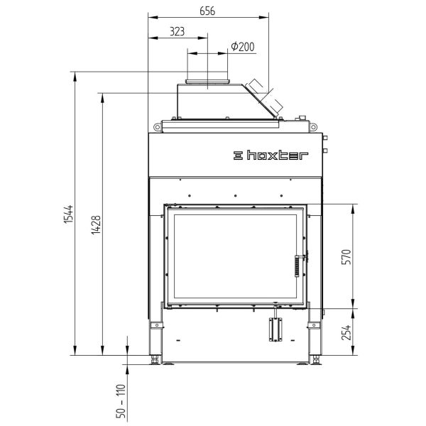 У топок HOXTER завжди чисте скло, завдяки механізму подачі повітря зверху на скло в співвідношенні 80% і 20% знизу. Плюсом є і герметичний забір повітря з вулиці з рухомим механізмом, що не дає конденсату при перепаді температур зашлаковувати трубу для подачі повітря з вулиці. Для зменшення теплового випромінювання через скло, можна замовити топку з подвійним склом. Двері можуть відкриватися праворуч, або ліворуч.