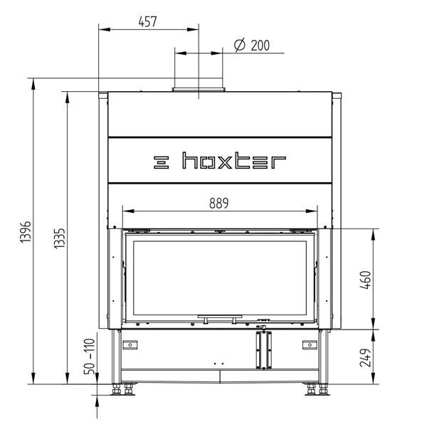 У топок HOXTER завжди чисте скло, завдяки механізму подачі повітря зверху на скло в співвідношенні 80% і 20% знизу. Плюсом є і герметичний забір повітря з вулиці з рухомим механізмом, що не дає конденсату при перепаді температур зашлаковувати трубу для подачі повітря з вулиці. Для зменшення теплового випромінювання через скло, можна замовити топку з подвійним склом. Двері можуть відкриватися праворуч, або ліворуч.