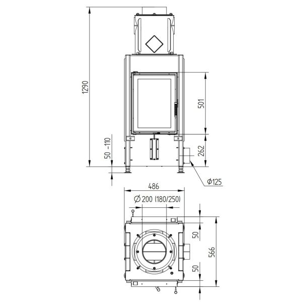 - Діаметр димоходу: 150 мм