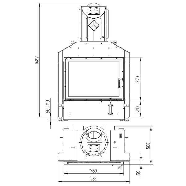 У топок Hoxter завжди чисте скло, завдяки механізму подачі повітря зверху на скло в співвідношенні 80% і 20% знизу. Плюсом є і герметичний забір повітря з вулиці з рухомим механізмом, що не дає конденсату при перепаді температур зашлаковувати трубу для подачі повітря з вулиці.