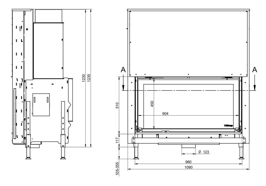 - Діаметр димоходу: 230\240 мм