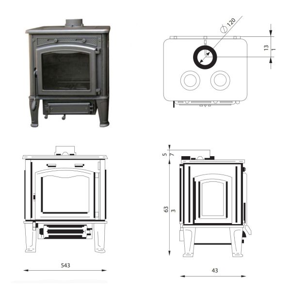 Стильовий напрям моделі також виражено в матеріалі, з якого виготовлена піч: сферичний чавун найвищої якості вдало інтегрований в дизайн, а також гарантує граничну міцність і посилені теплотехнічні параметри роботи. З великим якістю та ефективністю реалізована і конструкція моделі: передбачена ефективна для варки плита і дві зручні конфорки, шиберная заслінка, вбудована в піч, патрубок для припливу повітря, спеціальні регулятори для контролю потоків повітря і інтенсивності горіння, місткий зольник. Дані характеристики забезпечують просту і комфортну експлуатацію.