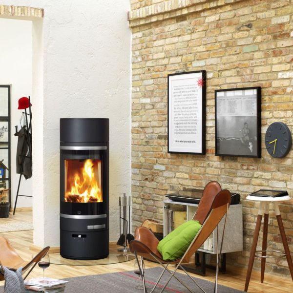 Оздоблення камери згоряння виконане з теплоємного матеріалу вермикуліт. У печах Scan серії 85-1 встановлена система "чисте скло", система вторинного допалювання дров, завдяки якій досягається максимальний ККД.