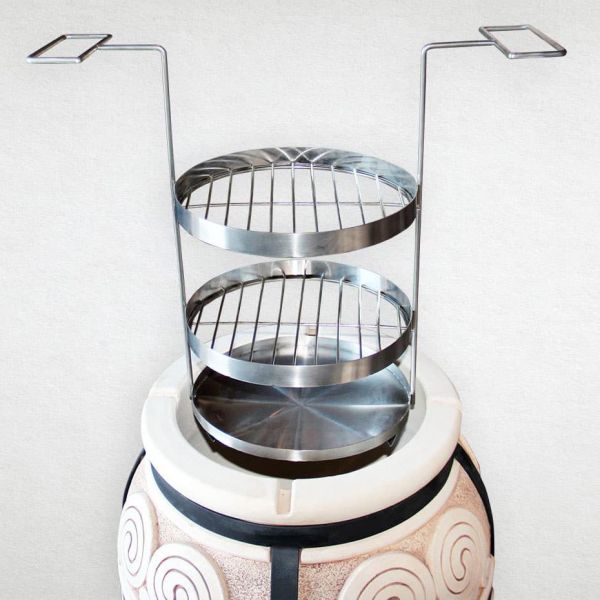 Це пристосування як варіант решітки одноярусною з піддоном для розширення кількості їжі, що готується. На відміну від решітки одноярусною з піддоном, в цьому комплекті застосовують дві решітки, одна над іншою, нижче піддон для жиру. Так само призначена для приготування м'яса, риби, ковбас, овочів, жаркого в горщиках і інших страв. Матеріал виготовлення - харчова нержавіюча сталь.Ви цікавились