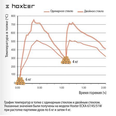Дверцята топок Hoxter сконструйовані для застосування подвійного скління, яке покращує ізоляційні властивості, зменшує кількість тепла що передається через дверцята у приміщення та цим самим дозволяє уникнути перегрівання приміщення. Можна тривалий час знаходитись перед каміном, не відчуваючи дискомфорту від спеки. При подвійному склінні підвищується температура в самій камері, що позитивно впливає на процес горіння, чистоту оглядового скла і на ефективність нагріву акумуляції, якщо вона є. Компанія Hoxter є унікальним виробником на європейському ринку, який пропонує топки з подвійним склом навіть у кутових версіях. Отже, це запобігає перегріванню в приміщеннях із меншими потребами в енергії. У 2012 році компанія Hoxter першою представила скло для кутових топок, де обидва скла є цільногнутими.